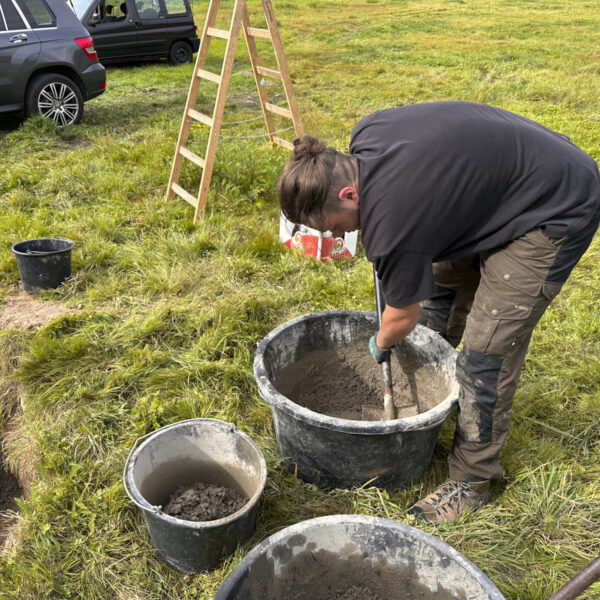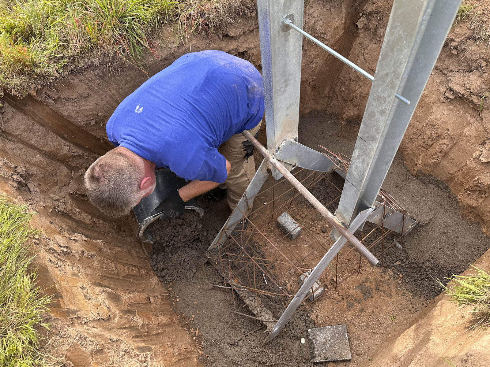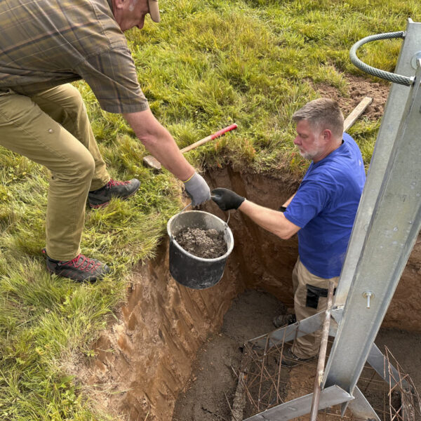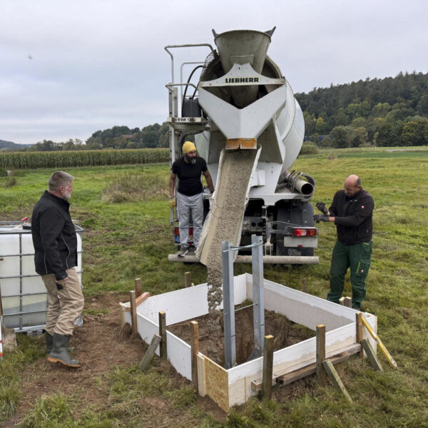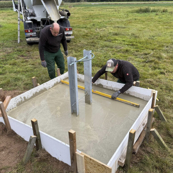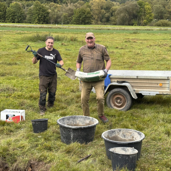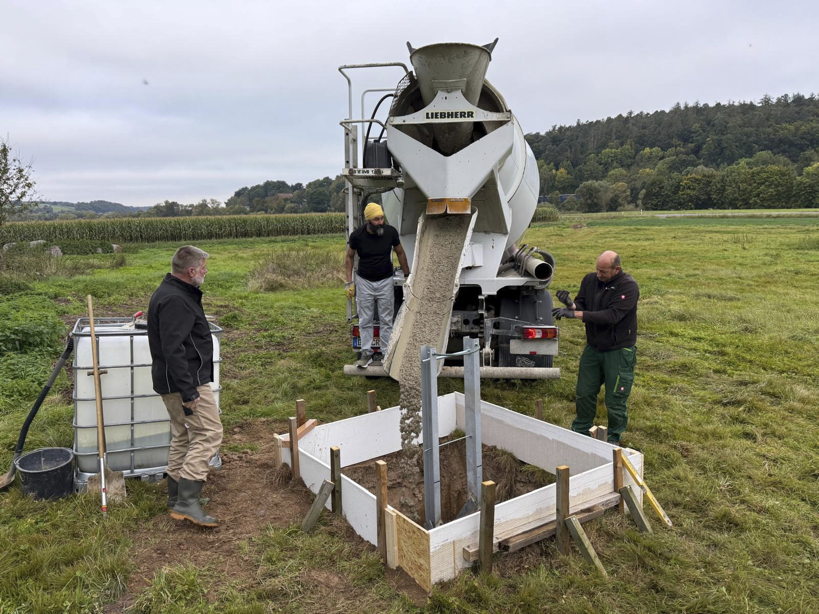 Es folgte eine gemeinsame Planung: Alle notwendigen Genehmigungen wurden eingeholt, Baufragen geklärt und die statischen Anforderungen für den Hochstamm ermittelt. Auf der Suche nach einem geeigneten Aufstellort wurde auf dem Privatgrundstück eines Vereinsmitglieds des ASV Costa Cörla e.V., das direkt an das Vereinsgewässer angrenzt, schnell ein passender Platz gefunden. Als Basis für die Verankerung wurde ein schweres Grundgestell geschweißt und im erforderlichen Fundament fest betoniert.