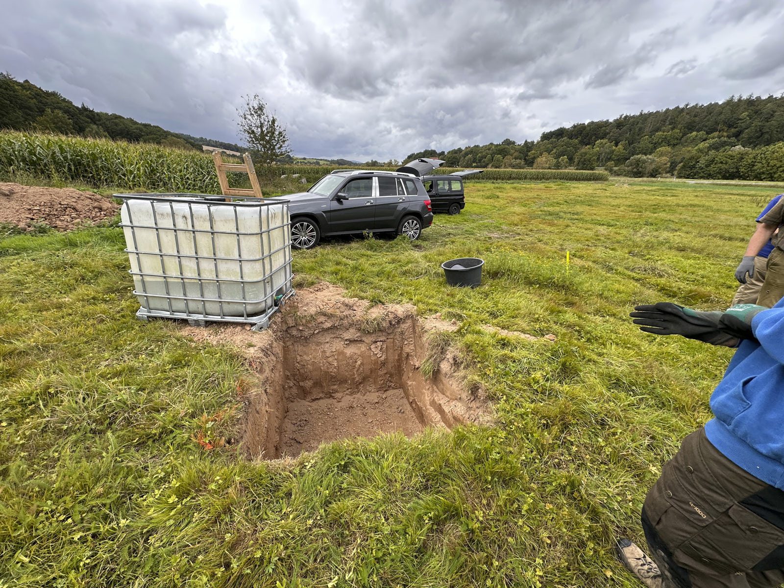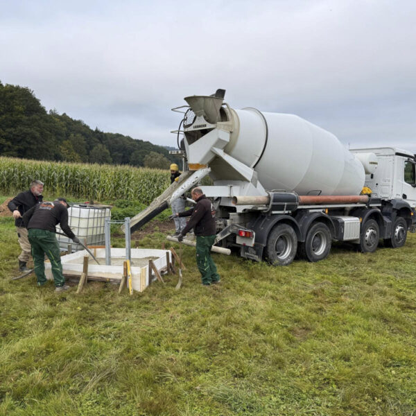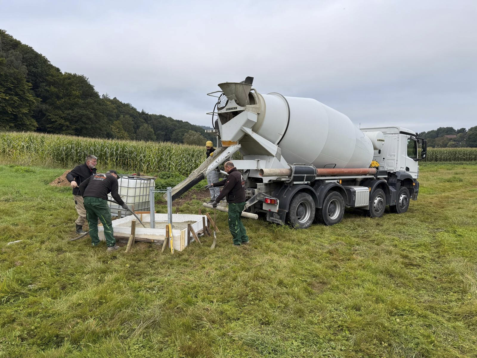 In diesem Jahr hat sich erstmals ein Storchenpaar in unserer Umgebung angesiedelt und war über den Sommer hinweg regelmäßig in den Fulda-Wiesen und an unserem Gewässer präsent. Gerade in ruhigen Momenten am Wasser konnten die Tiere aus nächster Nähe beobachtet werden. Ihr Nest hatten sie auf einem Mast entlang der Bahnstrecke gebaut – ein beeindruckender Anblick, jedoch kein idealer Ort für einen dauerhaften und sicheren Nistplatz. Aus dieser Beobachtung entstand die Idee, den Störchen ein alternatives Zuhause in naturnaher Umgebung anzubieten.